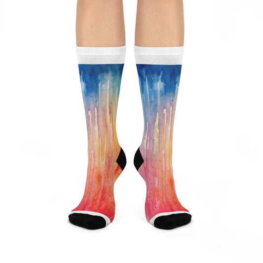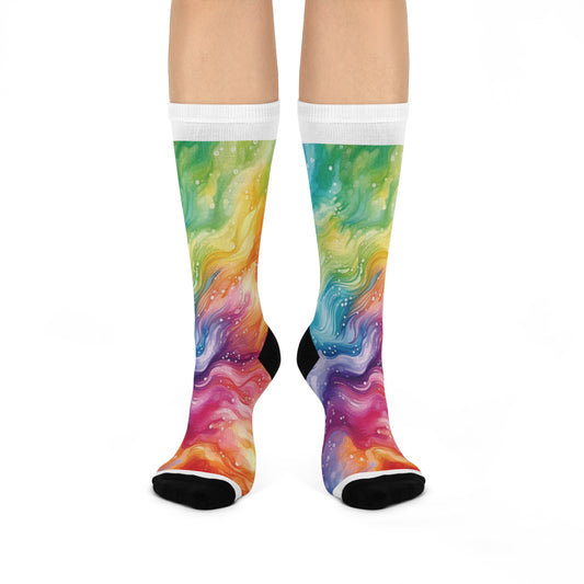 Dripping Rainbow Watercolor Cushioned Crew Socks