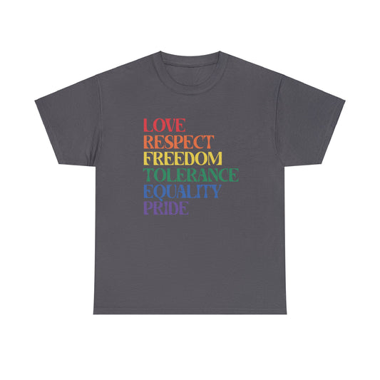 Love Respect Freedom Tolerance Equality Pride Heavy Cotton Tee