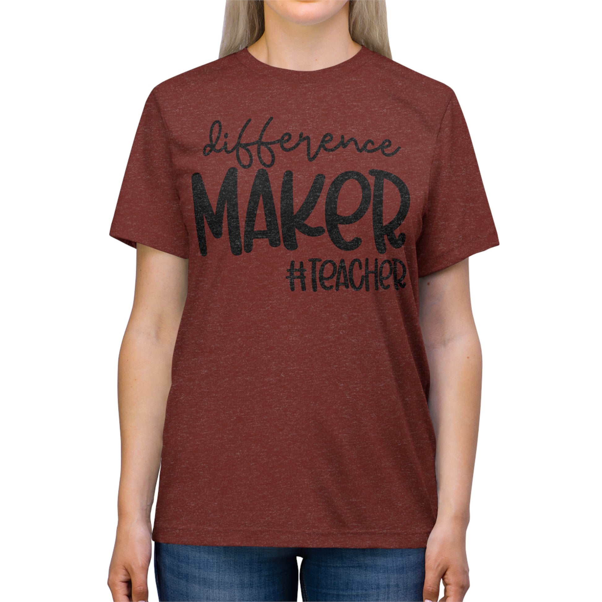 6. **Thoughtful Gift:** Show appreciation for the exceptional teachers in your life with the "Difference Maker #Teacher" Bella Canvas Triblend T-shirt. It's a thoughtful and meaningful gift that recognizes their influence and dedication.