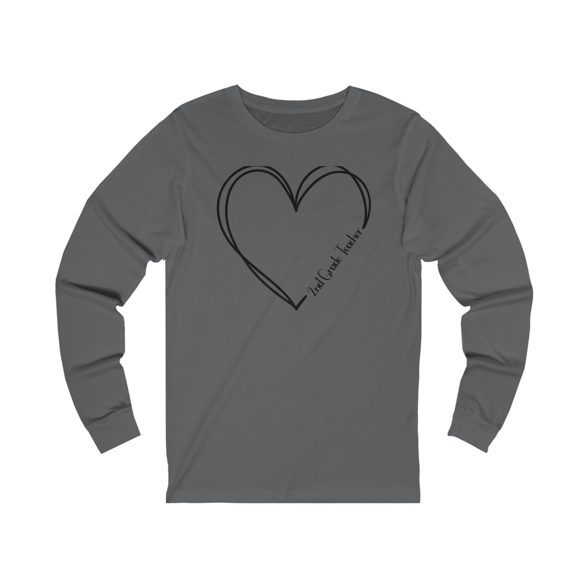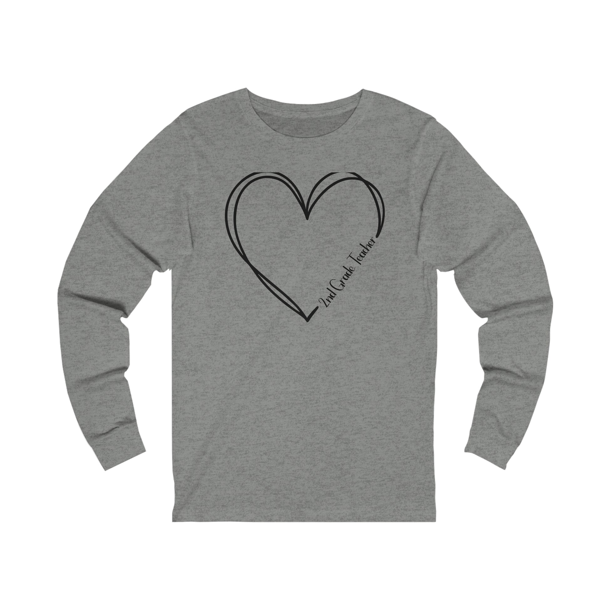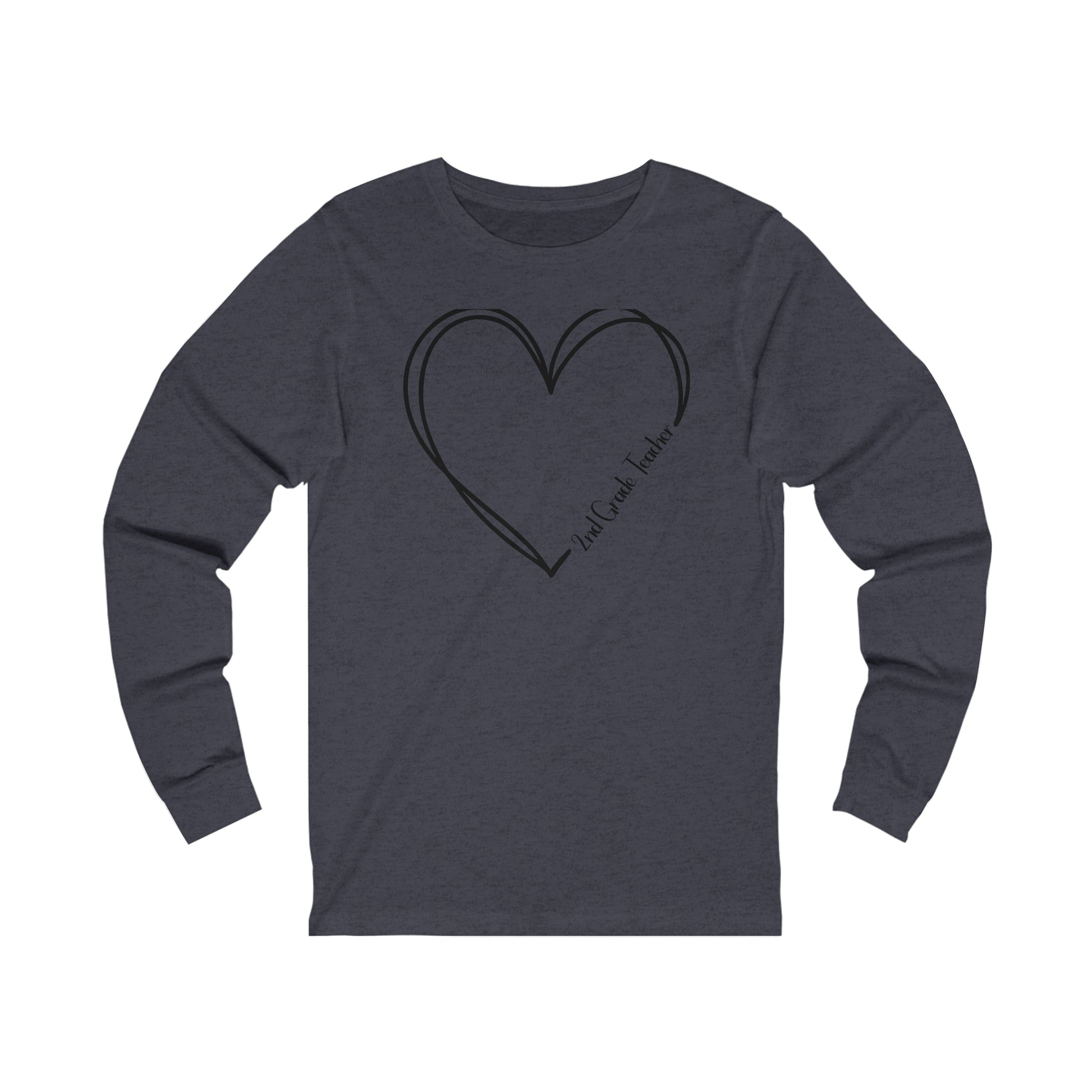 Heart 2nd Grade Teacher Jersey Long Sleeve Tee