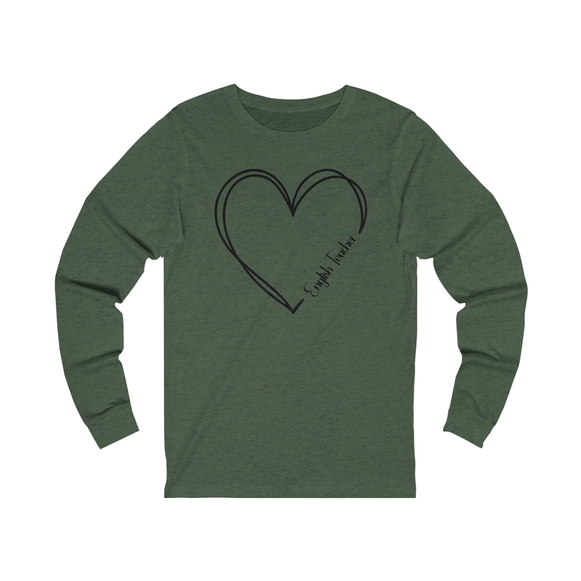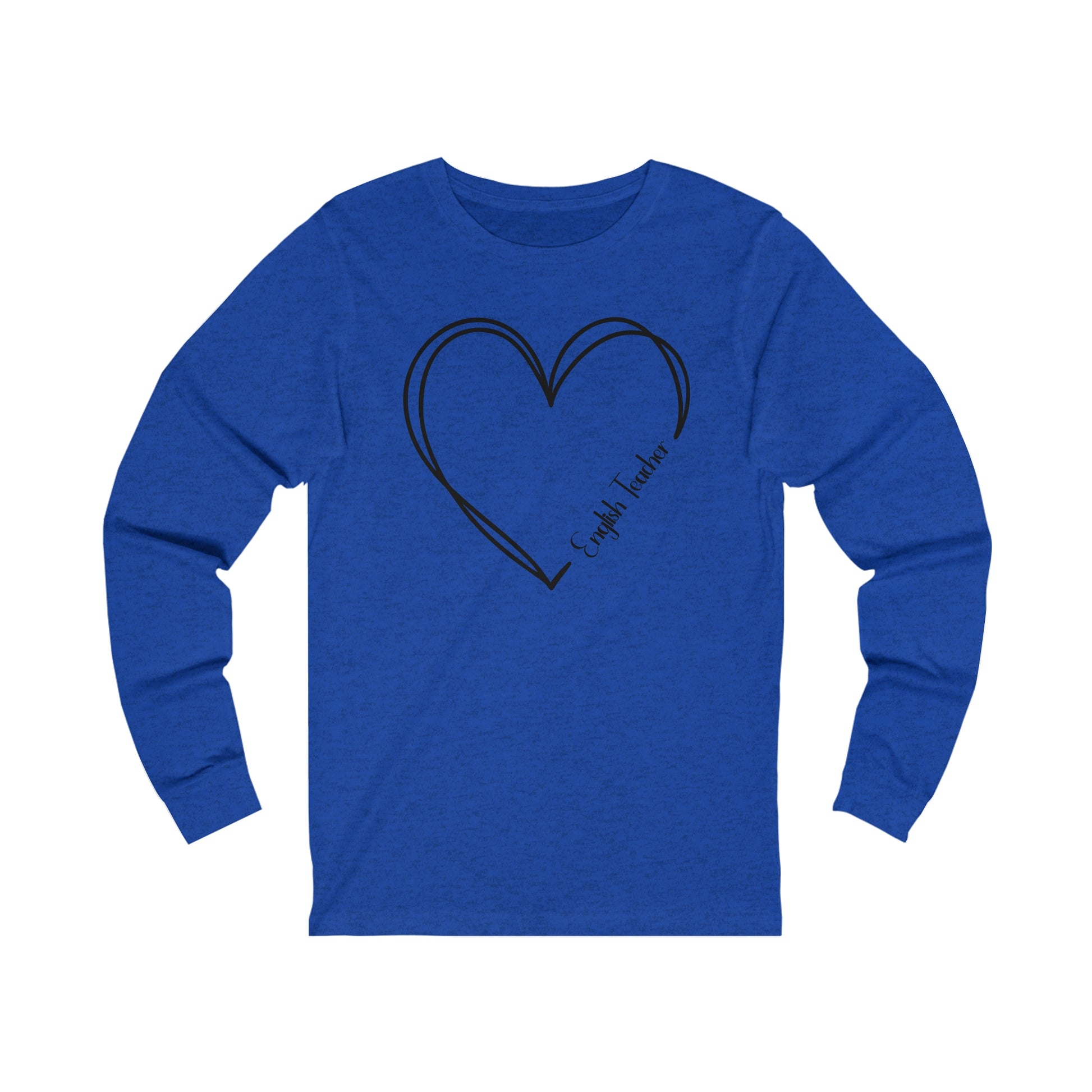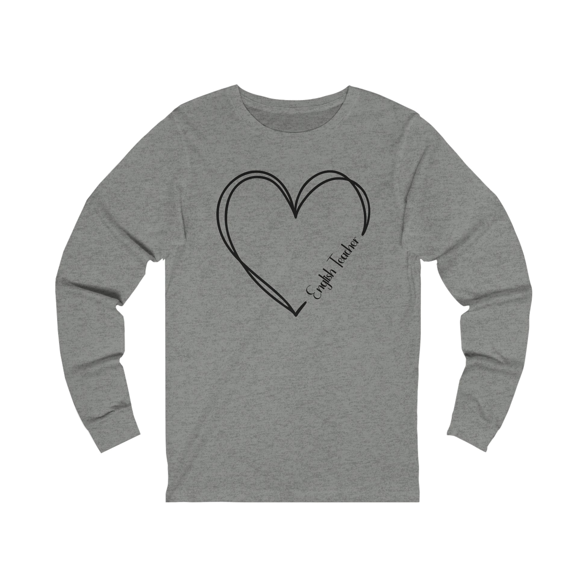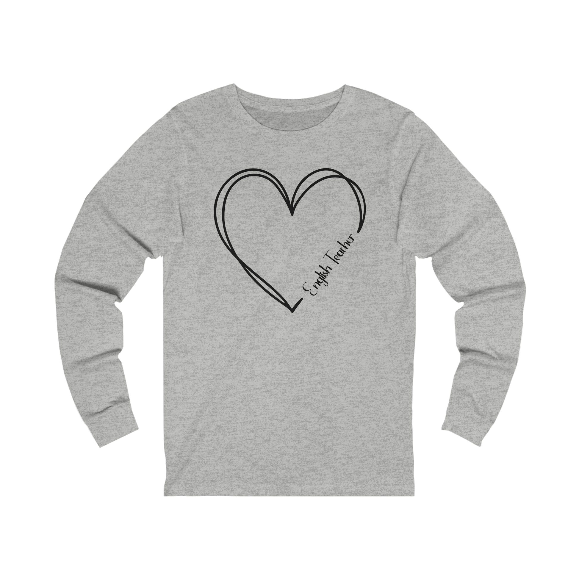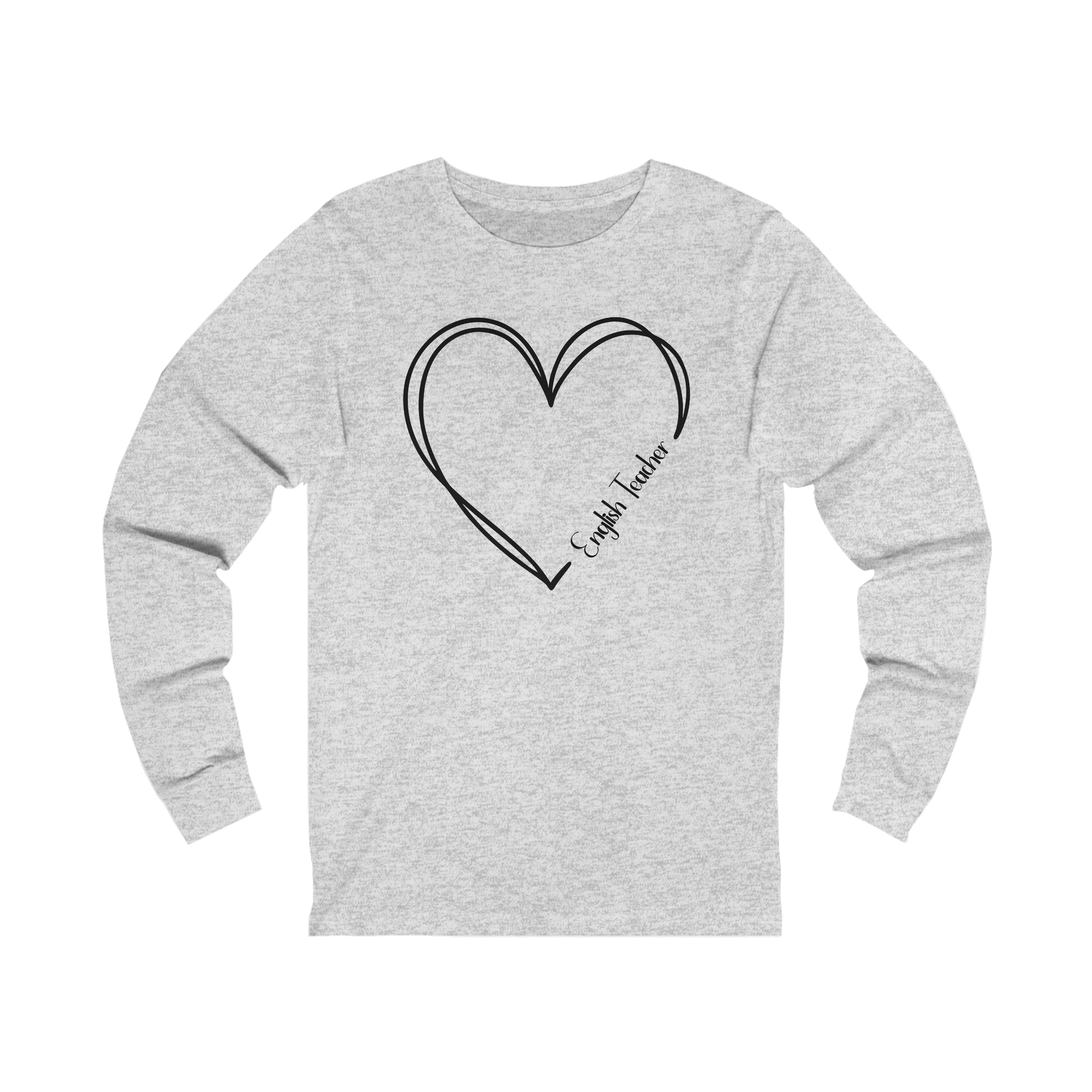 The Heart English Teacher Jersey Long Sleeve Tee is a great addition to any classroom wardrobe. It fits like a well-loved favorite. Casually elegant with an excellent quality print, it is an irreplaceable everyday item for anyone.