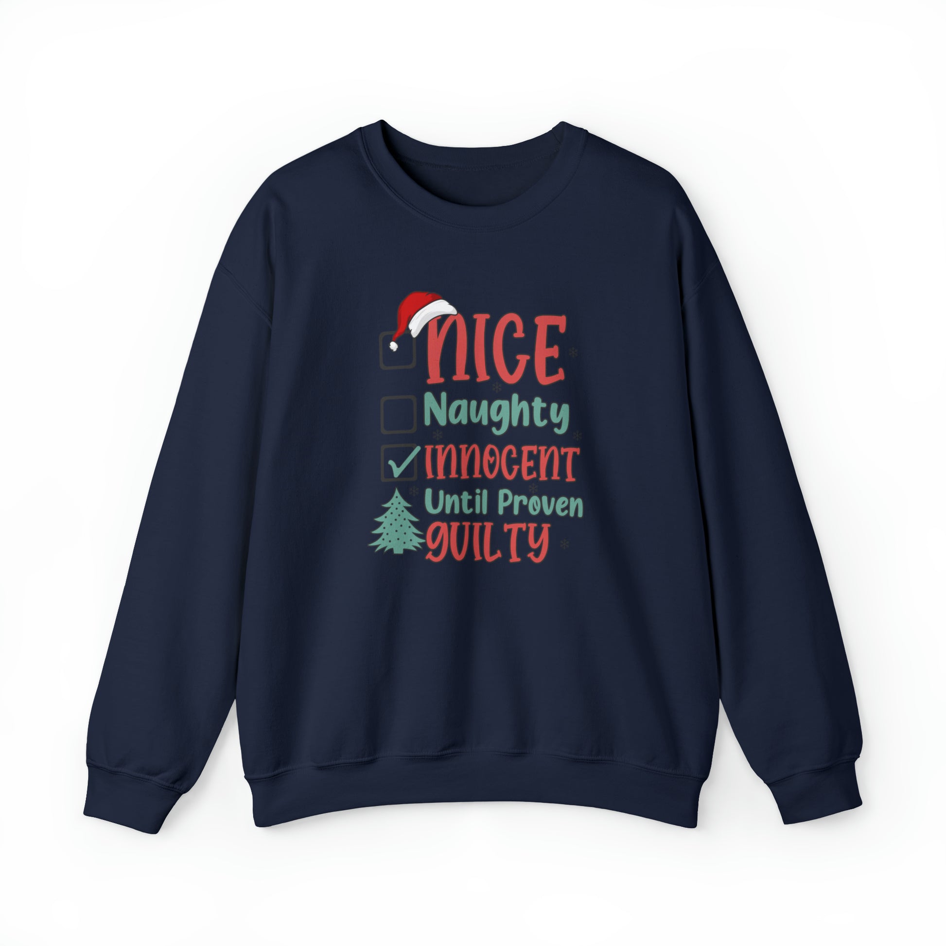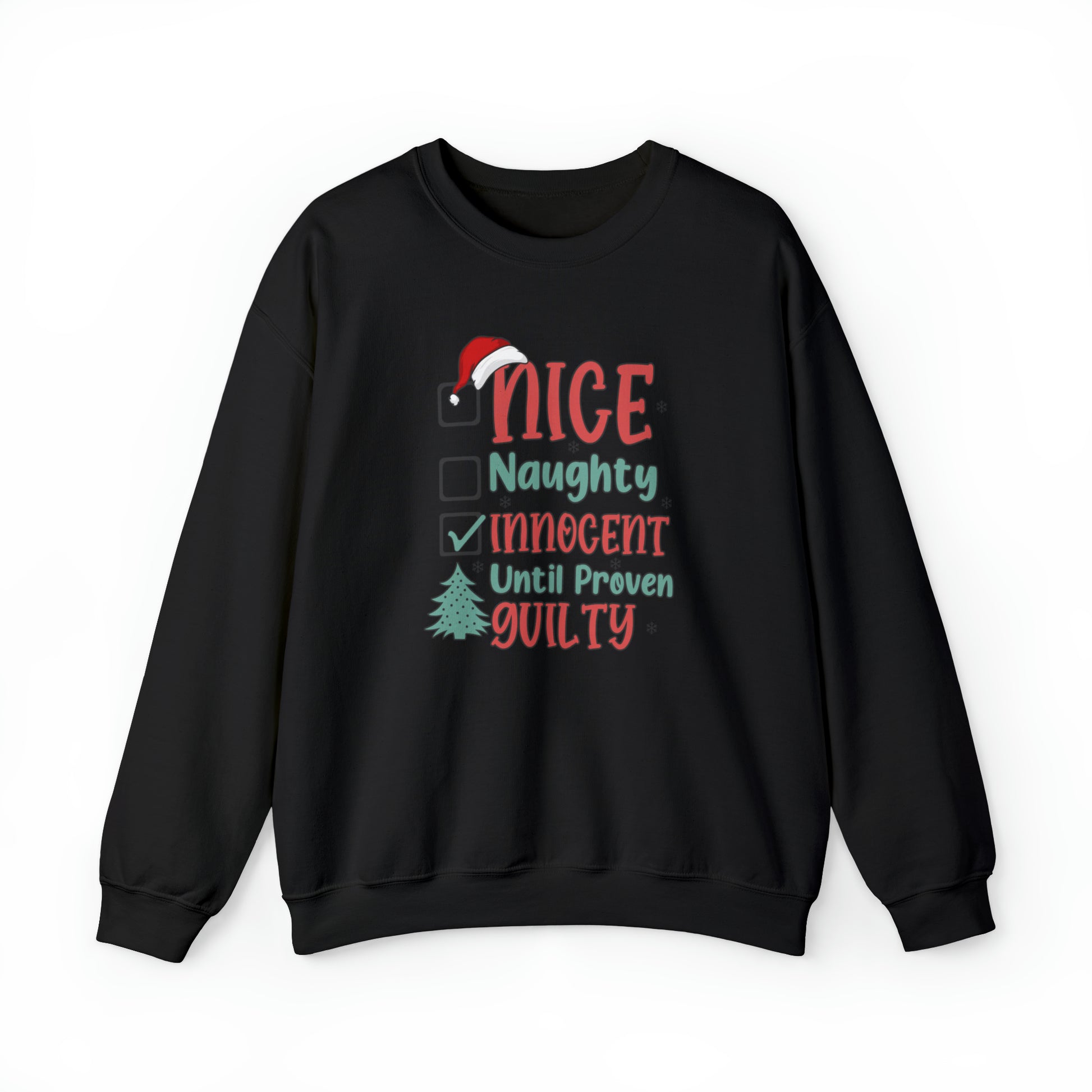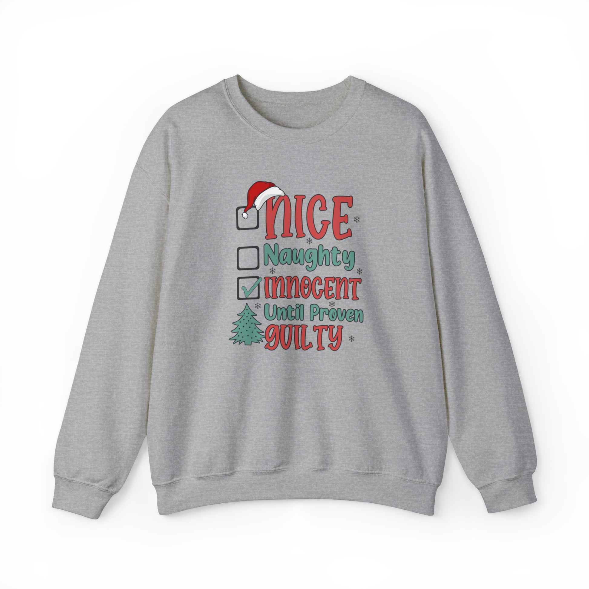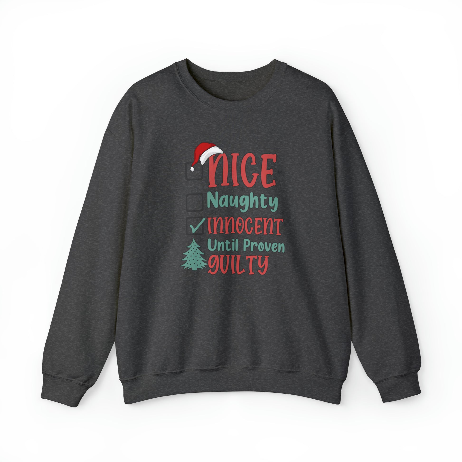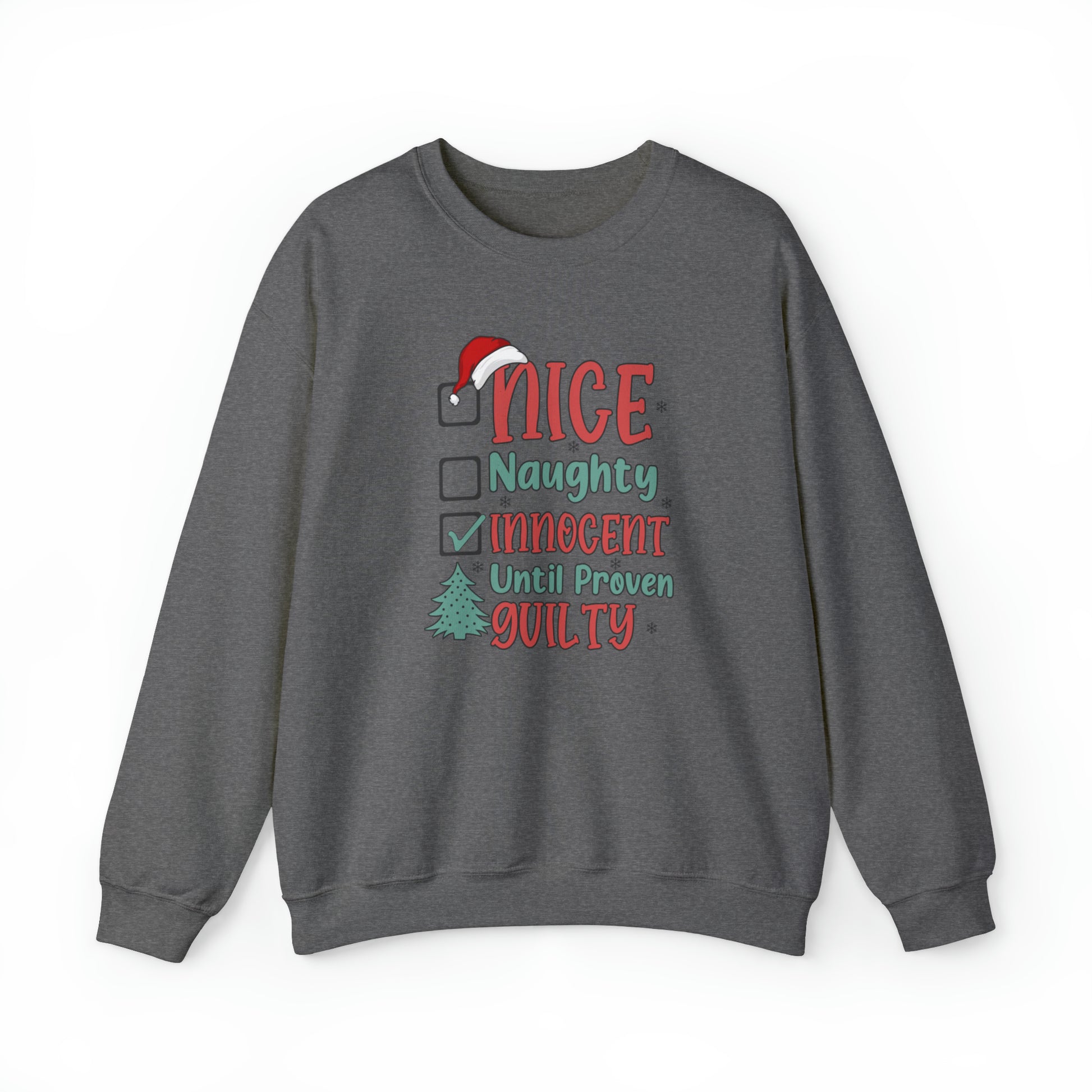Our Innocent Until Proven Guilty Christmas Heavy Blend™ Crewneck Sweatshirt is a fun addition to your Christmas wardrobe.
