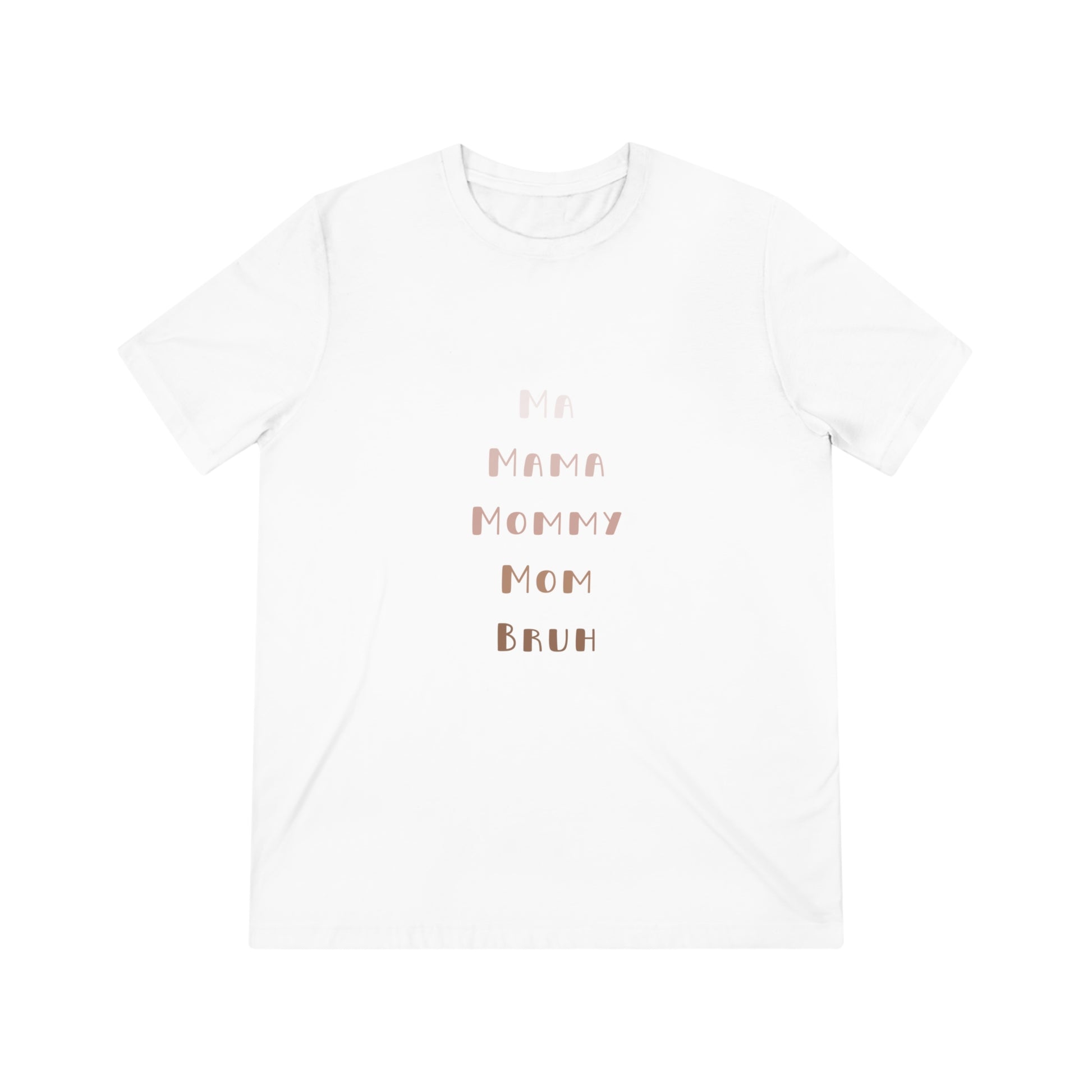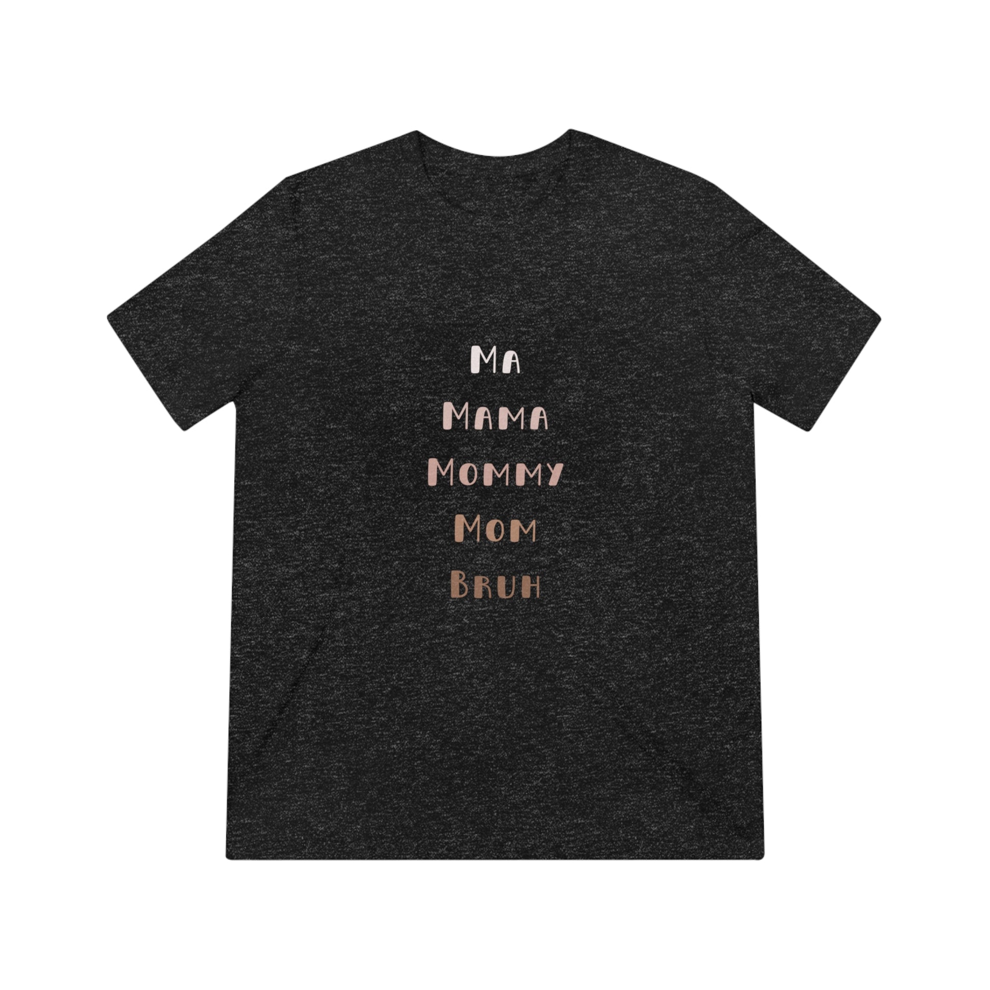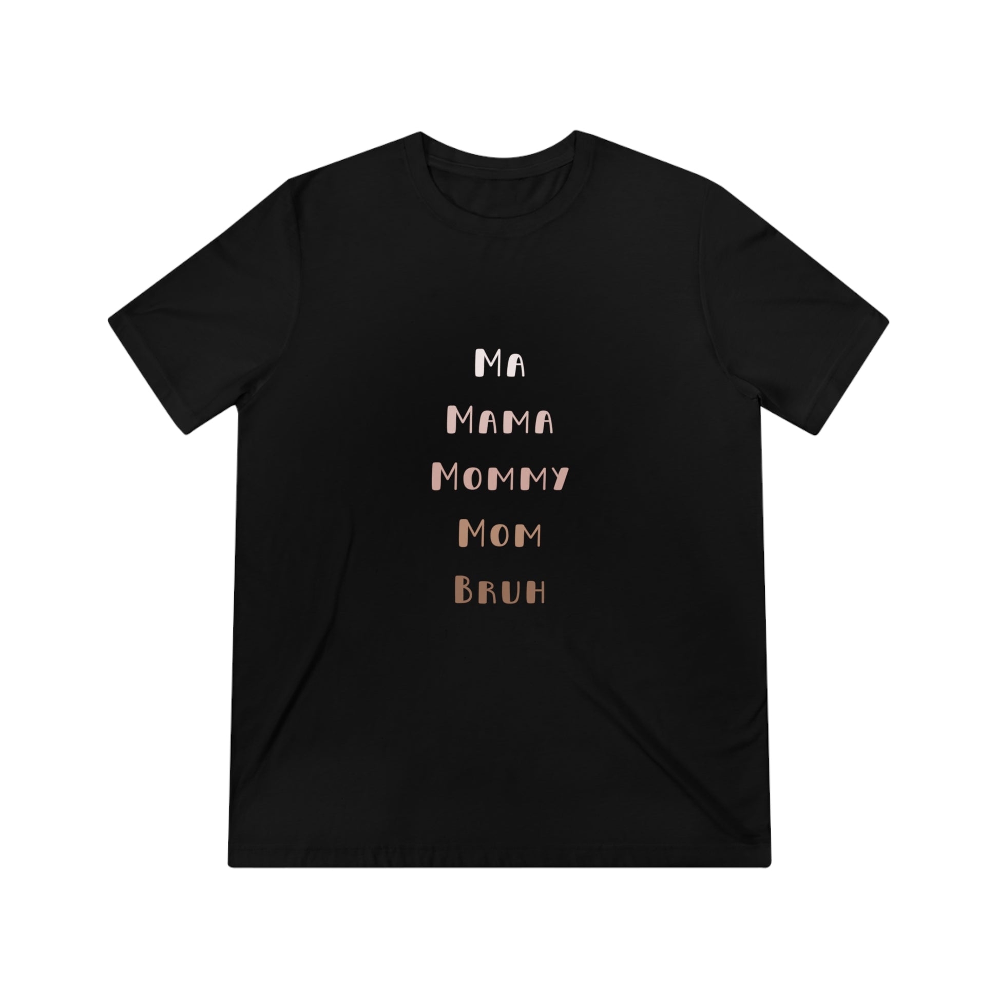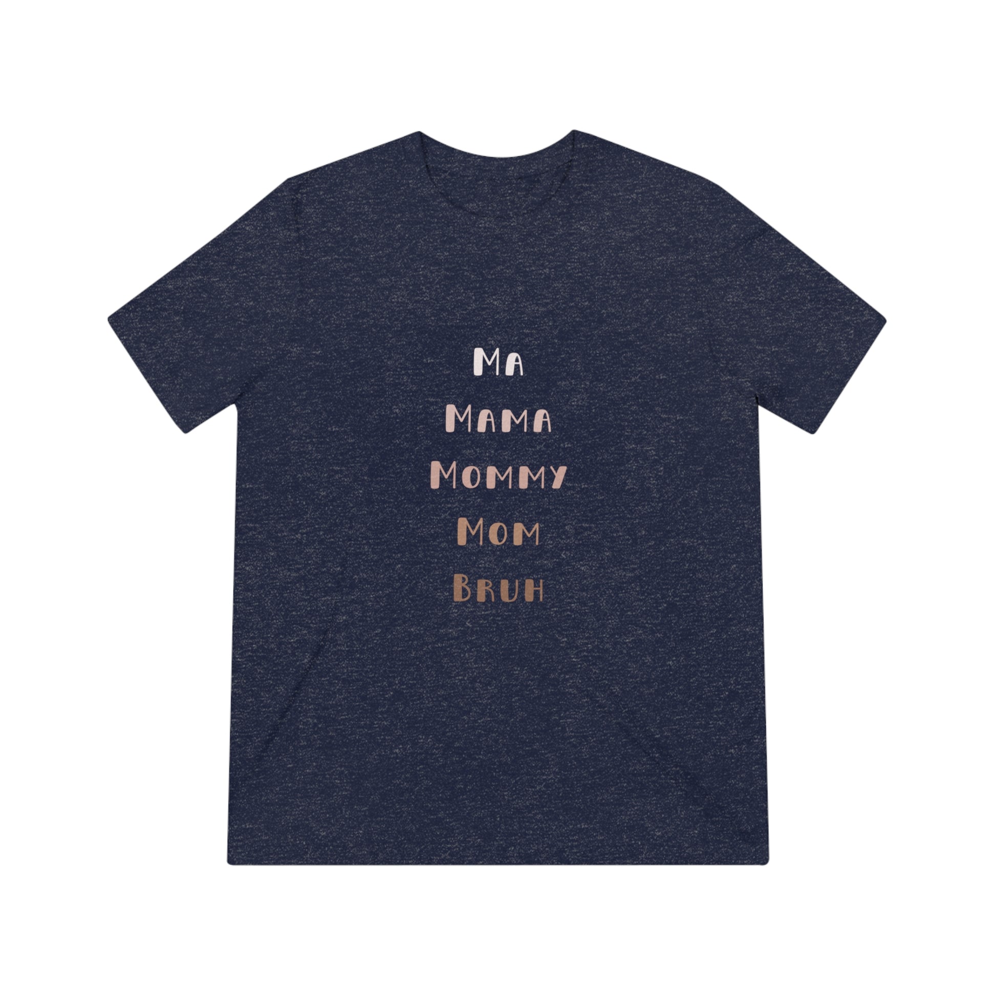 Show the funny aspects of parenthood with our Neutral Ma, Mama, Mommy, Mom, Bruh Triblend Tee.