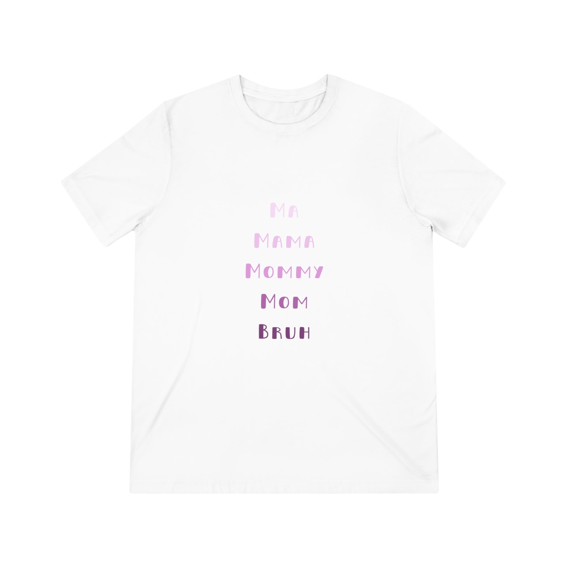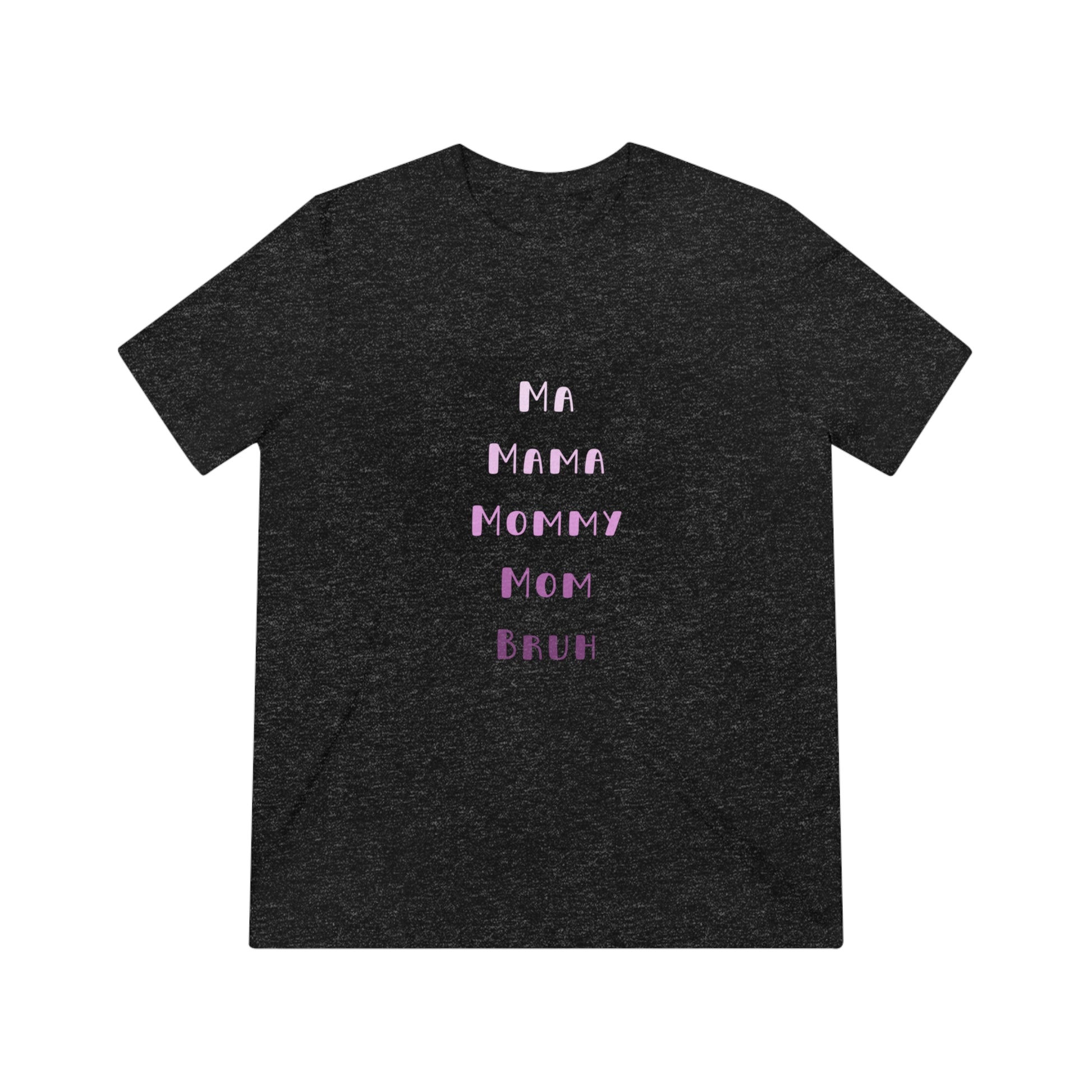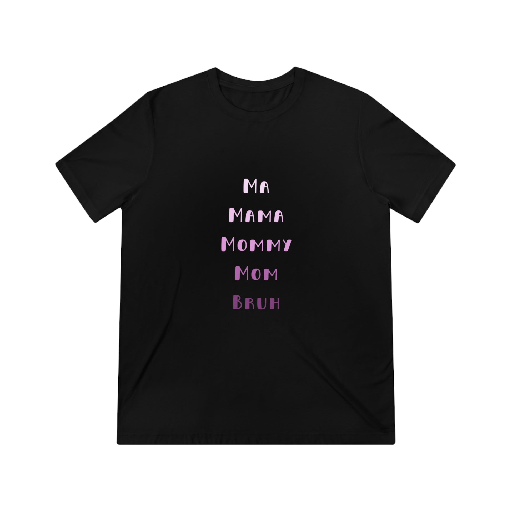 Show the funny aspects of parenthood with our Pink Ma, Mama, Mommy, Mom, Bruh Triblend Tee.