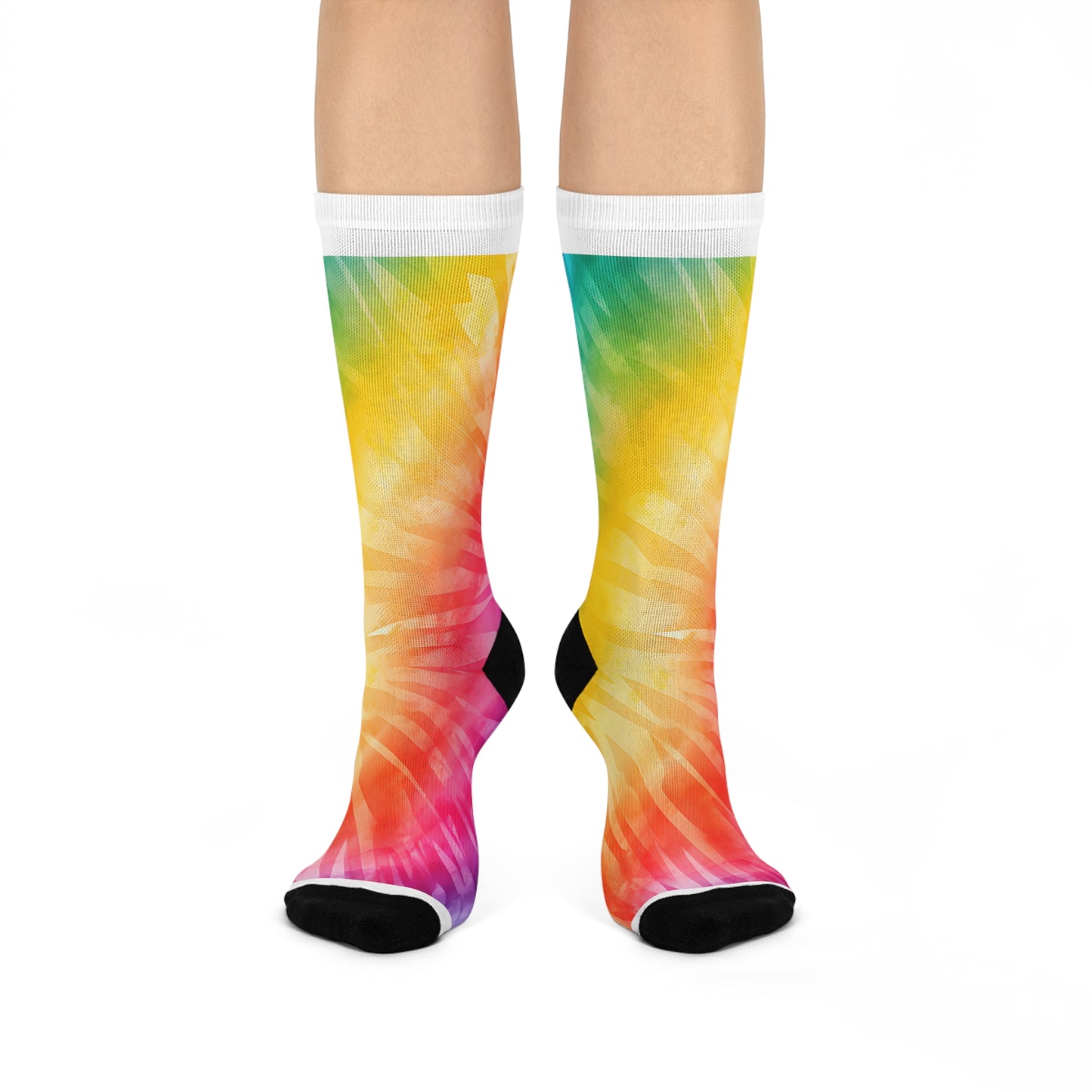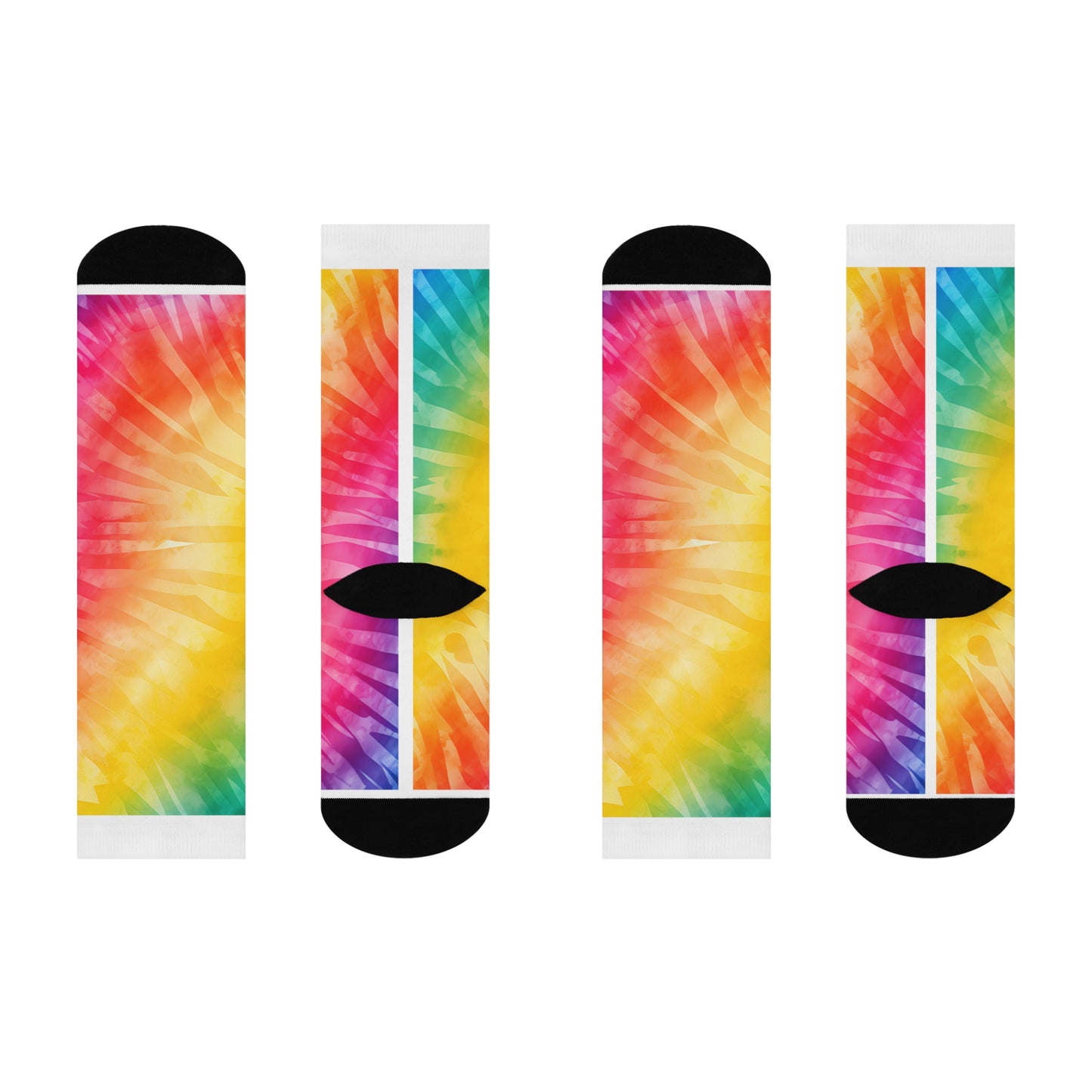 These cushioned Rainbow Tie Dye crew socks are a fully cushioned heel-to-toe providing superior comfort. These are a must have to show your pride and to show you're an ally!