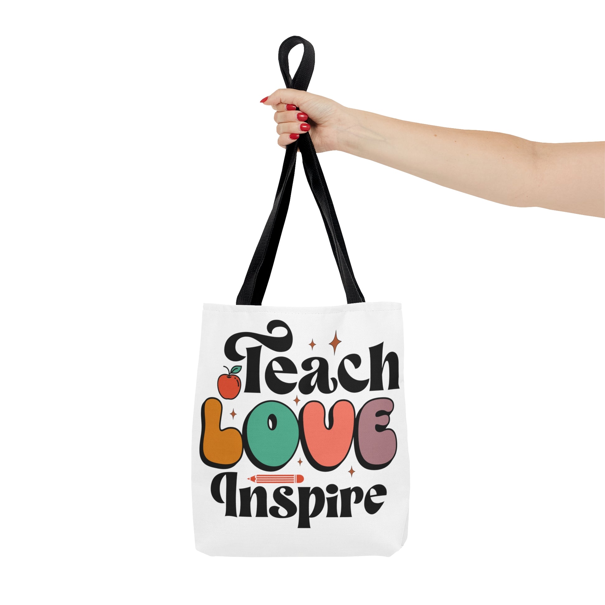 5. **Thoughtful Gift:** Looking for a meaningful gift for your favorite teacher or educator? The "Teach Love Inspire" Tote Bag is a thoughtful and heartfelt expression of gratitude. Show your appreciation for the dedication and love they bring to their work.